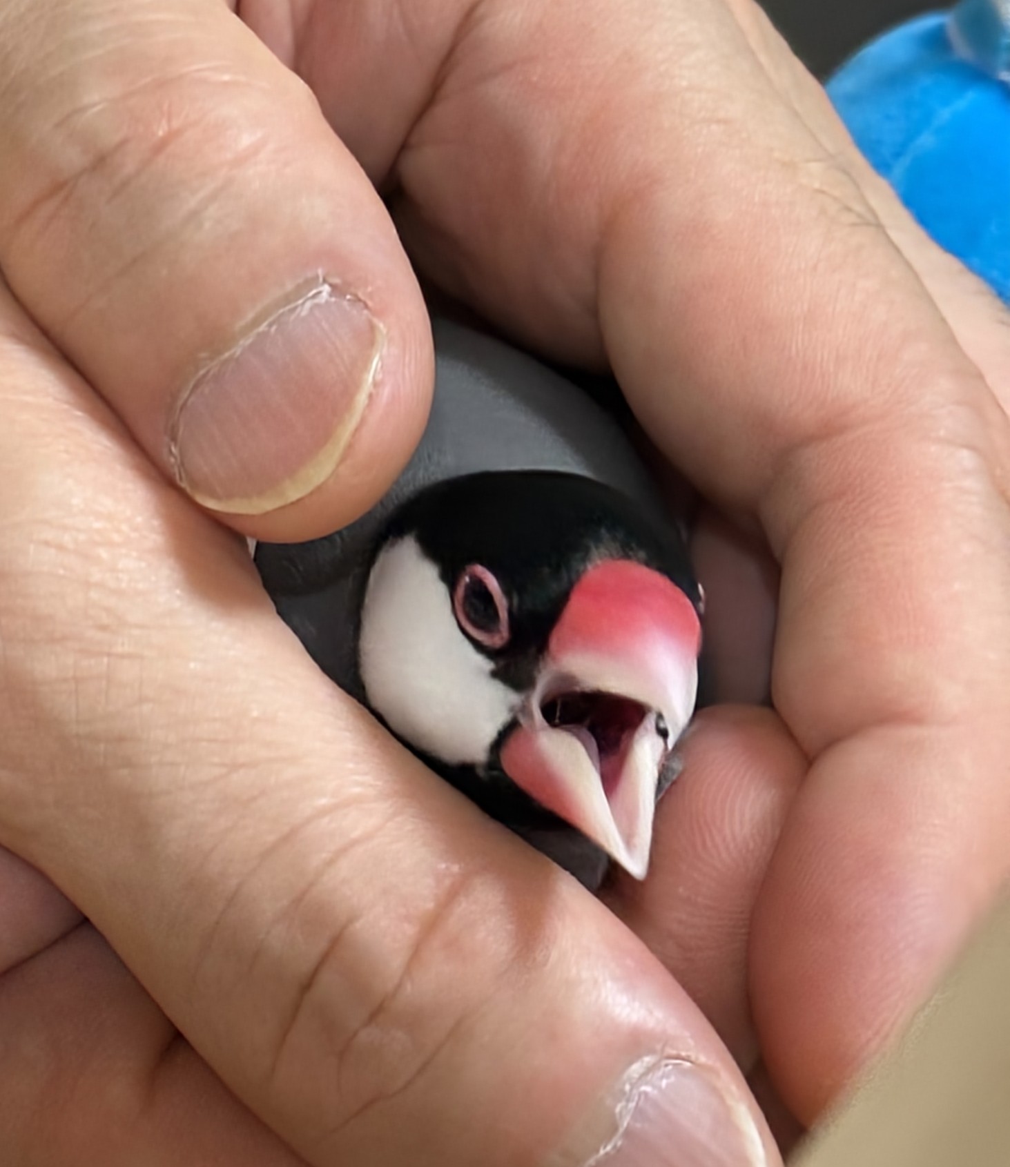 我が家に来たばかりのころ。羽の色はまだあかちゃん